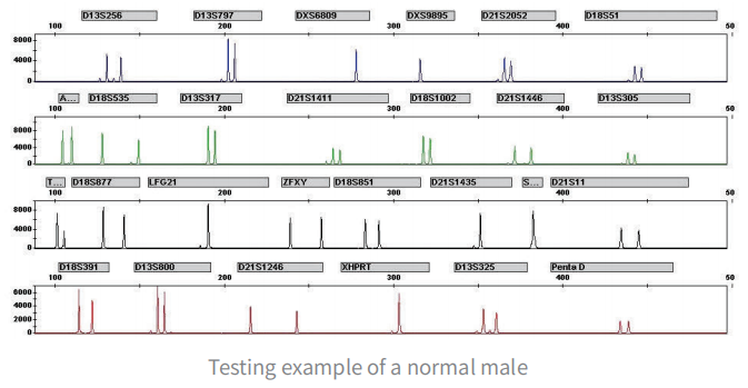 Detect 13, 18, 21, X and Y chromosomes numerical abnormality at one time by 27 STR markers.