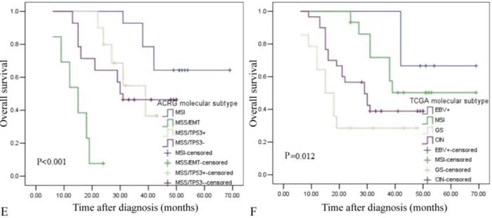 图1 中国人群胃癌中TCGA和ACRG分类的预后意义[2]