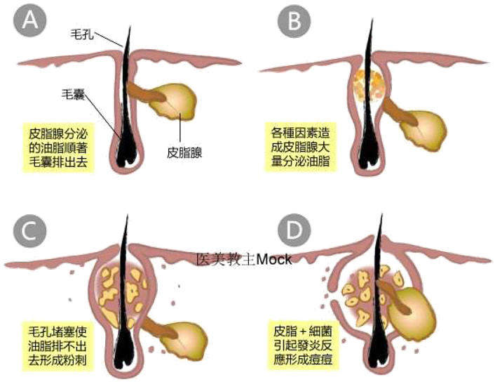 研究指出,导致痘痘发生的因素很多,包括遗传、荷尔蒙分泌、角质细胞功能异常、饮食、精神焦虑及护肤品使用不当等等。而由个人习惯导致的主要如下: