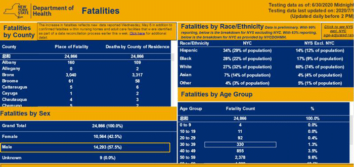 美国纽约新冠患者死亡情况统计实时数据