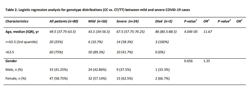 rs12252位点的多态性与新冠感染严重性显著相关