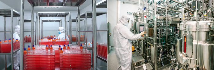 右:大规模生产疫苗原液的Vero细胞培养生物反应器