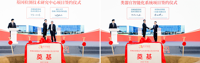 随后, ■澳门十大棋牌排行榜最新■澳门十大棋牌排行榜推荐 分别与浙江大学苏州工业技术研究院及丹望医疗科技(上海)有限公司进行了《基因检测技术研究中心项目》、《类器官智能化系统项目》签约仪式。浙江大学苏州工业技术研究院院长叶继术、丹望医疗科技(上海)有限公司创始人/CEO李俊强、 ■澳门十大棋牌排行榜最新■澳门十大棋牌排行榜推荐 董事长陈初光出席签约仪式。