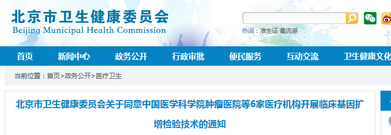 原文链接:北京市卫生健康委员会关于同意中国医学科学院肿瘤医院等6家医疗组织召开临床基因扩增检验技术的通知