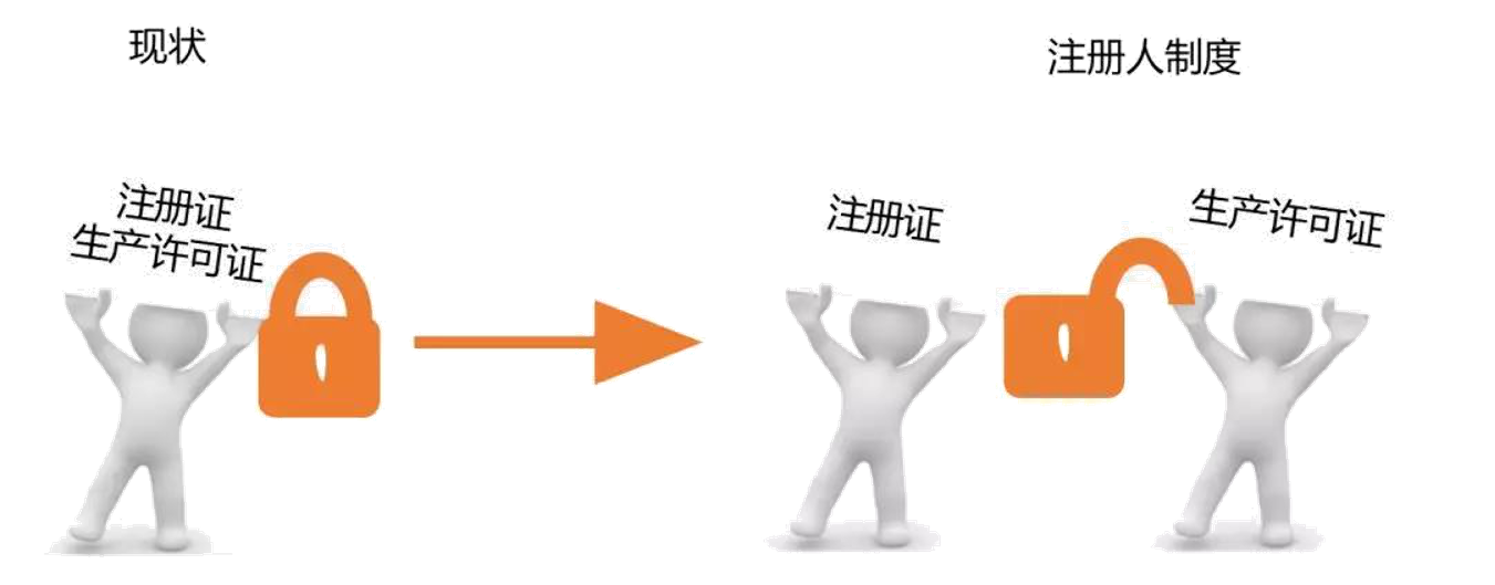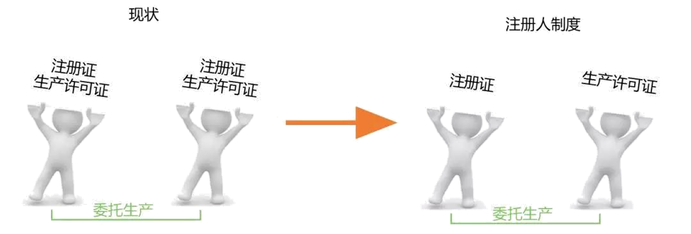 实施注册人制度将为产品注册和生产许可“解绑”,如下图所示: