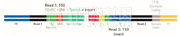 VDJ建库的捕获固定采用5’端捕获方法,目的是为了在保证序列长度较短的情况之下富集到位于5’端的多变VDJ区域,而不是位于3’端的较为保守的C区域,这段区域通常不是重点的研究方向。